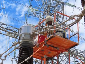 Petugas PDKB PLN melakukan pemeliharaan secara online atau tanpa padam pada Gardu Induk Kramatwatu, Serang, Banten. FOTO DOK PLN